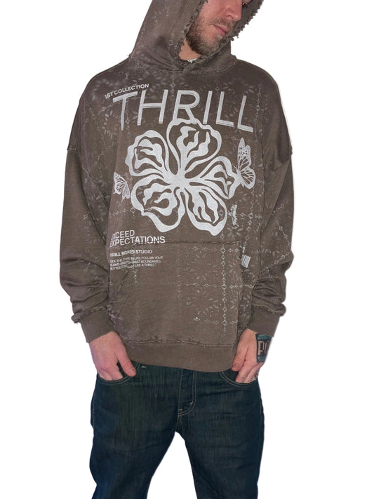 Thrill Exceed Expectations, Vintage Style Hoodie, Washed Brown *1of1